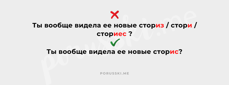 Нормативной рекомендации пока не существует, но слово, скорее всего, примет форму «сторис» по аналогии с «бакс» и «памперс». Согласно мнению лингвистов, слово «сторис» также нельзя склонять, так как оно является англицизмом и сленгом.