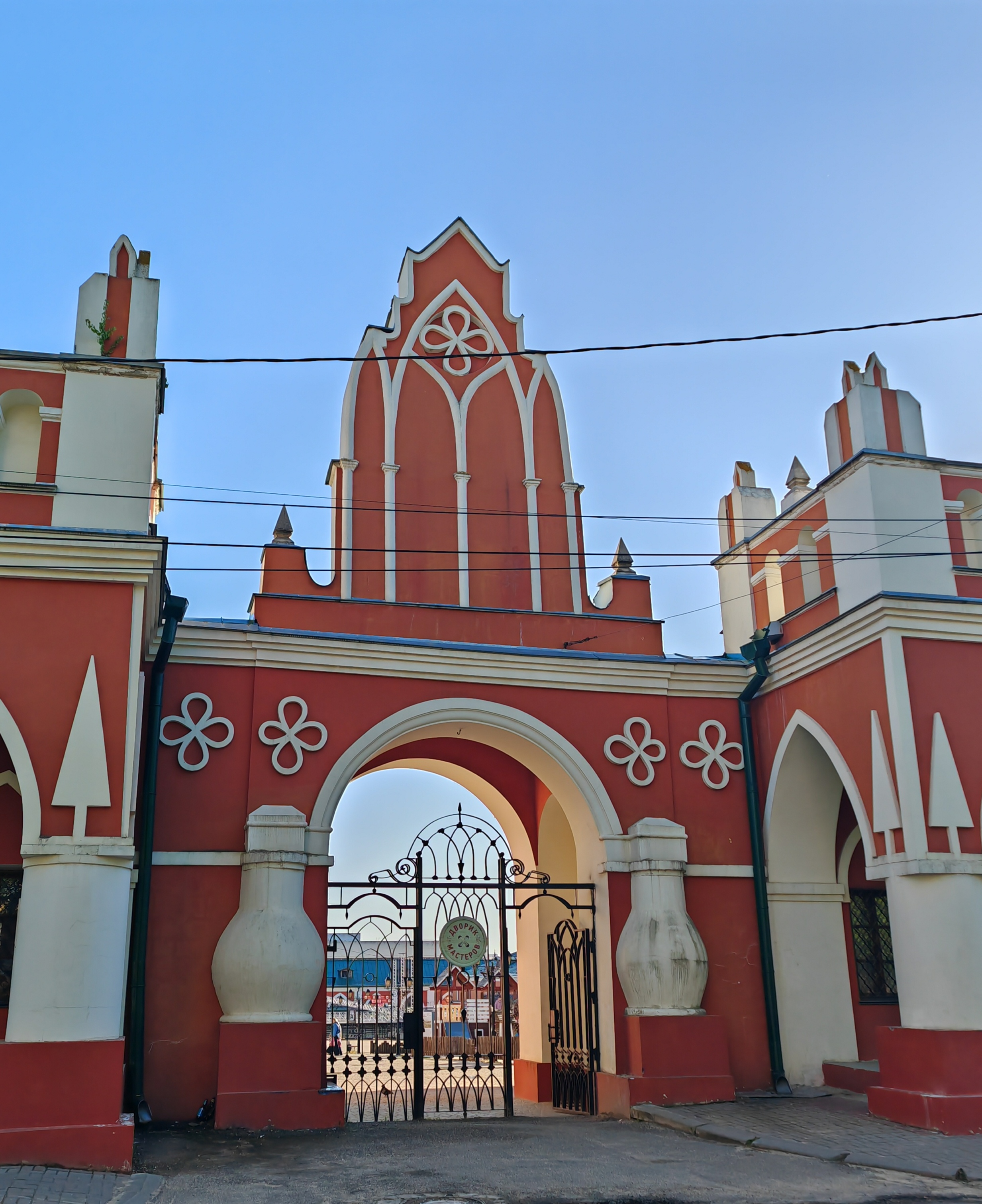 На следующий день с утра у нас была обзорная экскурсия по городу. Она началась с Гостиного двора — одного из значимых символов Калуги, выполненного в стиле русской готики с колоннами, галереями и арками. Сегодня это и торговые ряды, и место проведения различных мероприятий.
