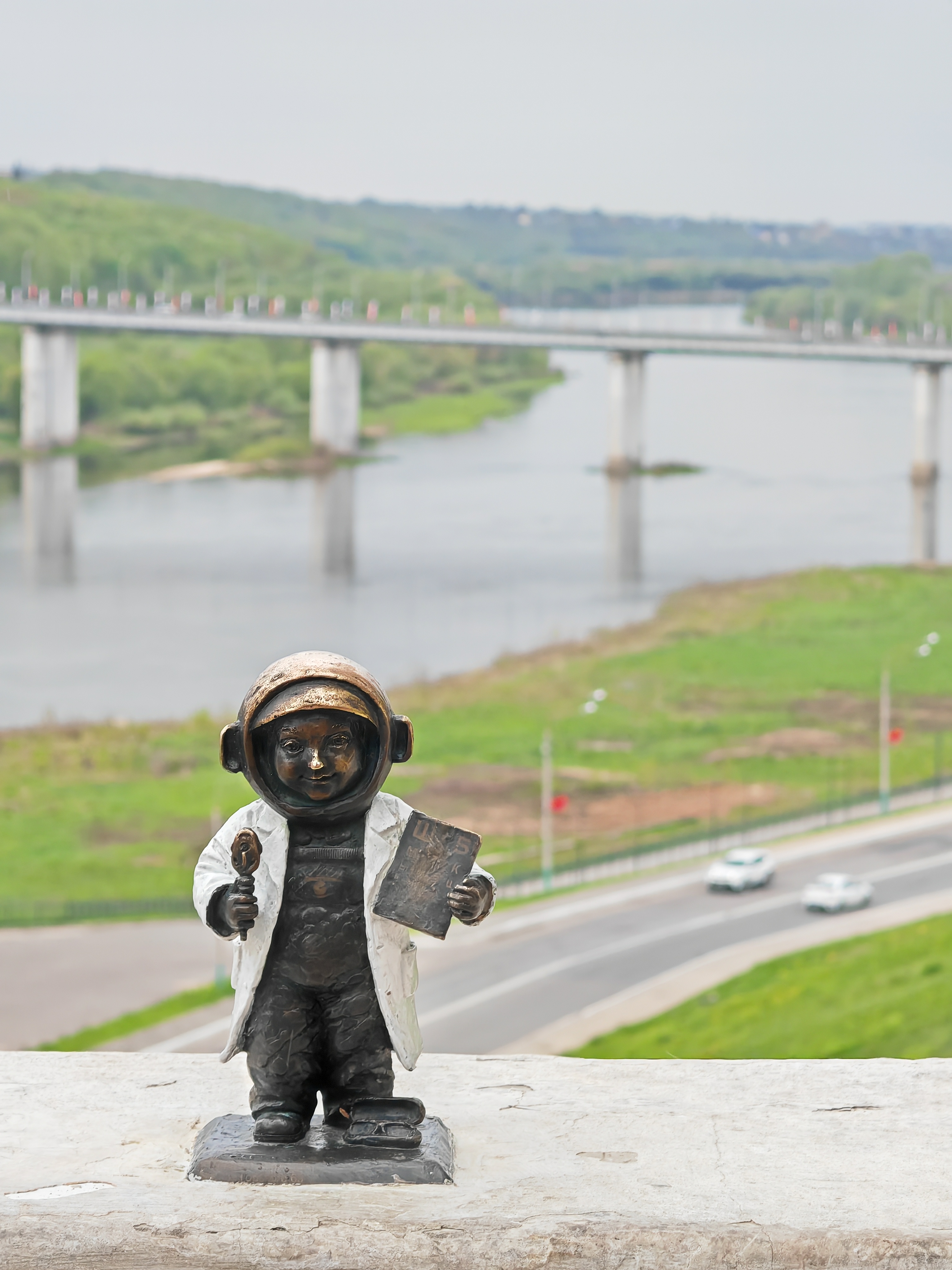 Затем мы отправились в Центральный парк культуры и отдыха, на смотровую площадку с потрясающим видом на красавицу Оку. Здесь же можно увидеть и потрогать очередного «космонавтика» — «офтальмонавтика».