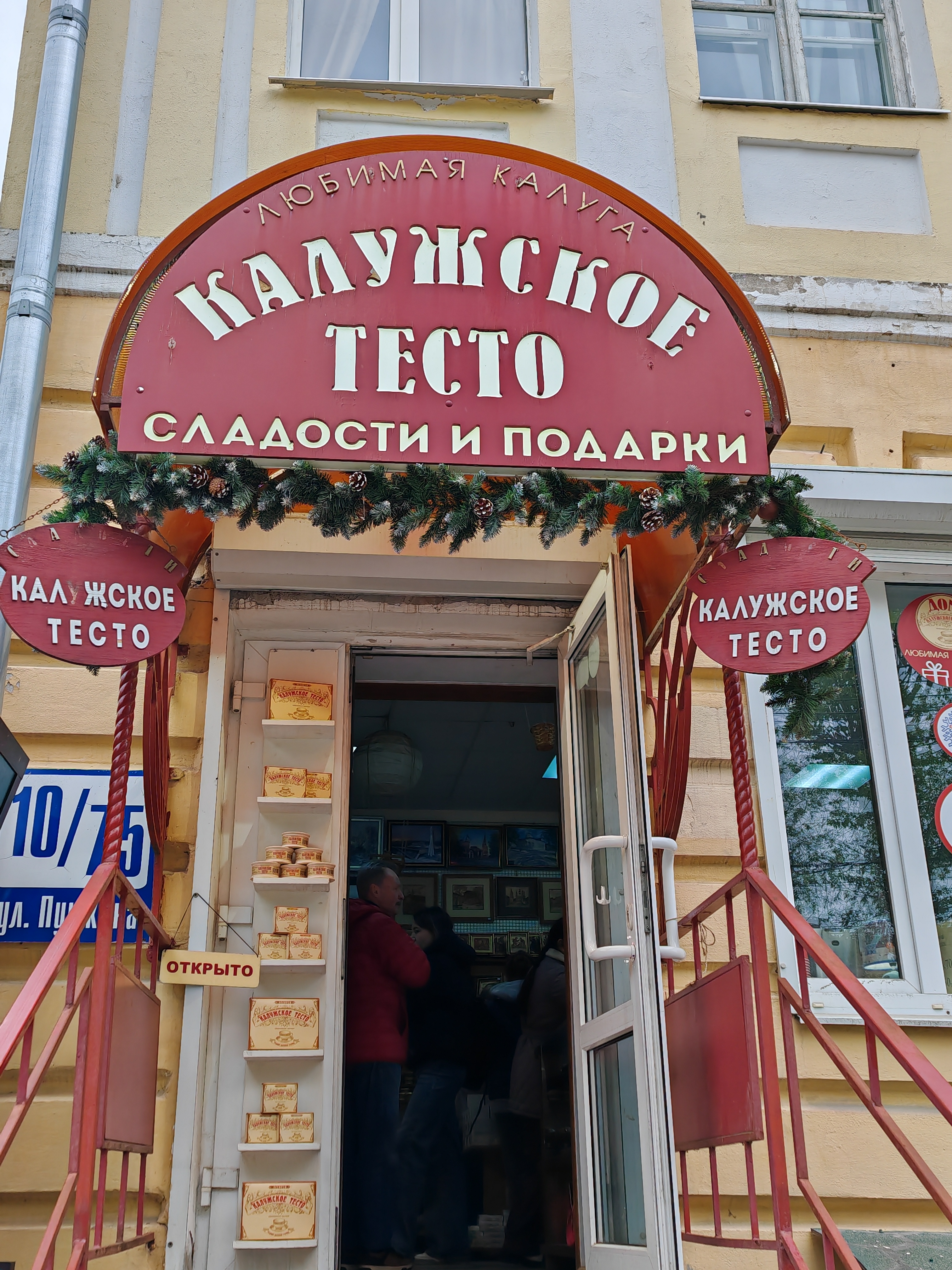 Время близилось к обеду, и экскурсовод пригласила нас отведать калужского теста в самый популярный и известный магазин на ул. Пушкина, который так и называется «Калужское тесто» — традиционное русское лакомство из ржаных сухарей, мёда и пряностей.