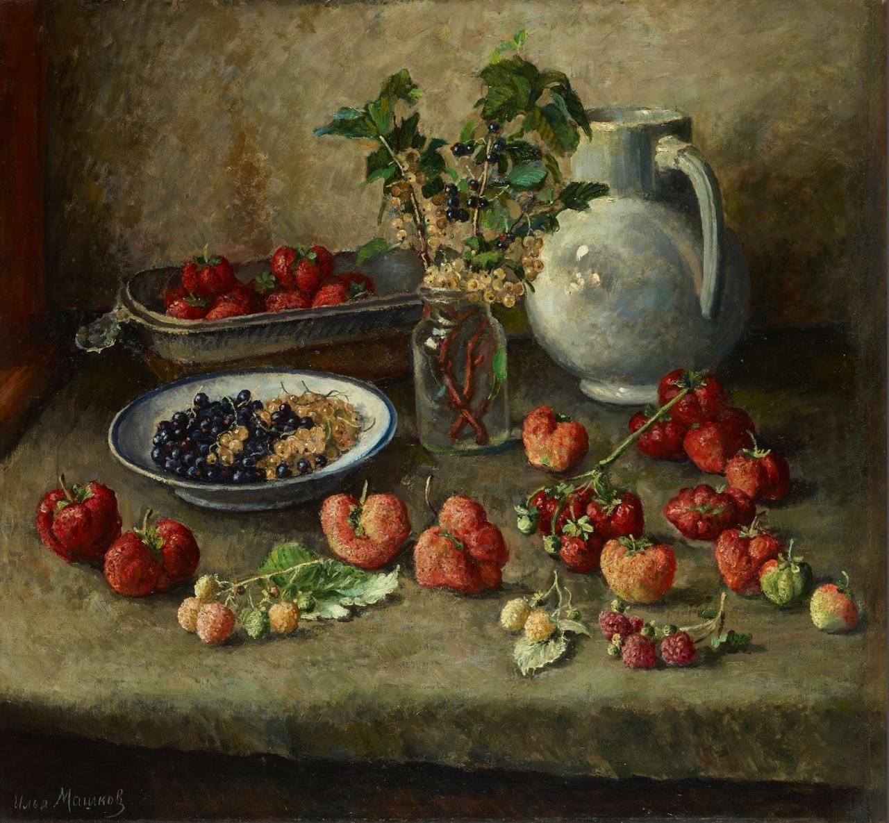 Нельзя не остановиться перед его женщинами или натюрмортами, — далекие от реализма, они тем не менее телесны, полны живой бурлящей энергии цвета и формы. Пожалуй, в натюрмортах это ощущение жизни и цвета, за которое Машкова называют «русским Сезанном», сохраняется на протяжении всей творческой жизни художника. Когда мы смотрим на лоснящихся жиром рыбин, разделанное мясо, бесконечные пухлые буханки хлеба, возникает физическое, почти настоящее ощущение голода, толпой обступают гастрономические воспоминания: мягкая белая булка, тонкая хрустящая корочка, холодное молоко.