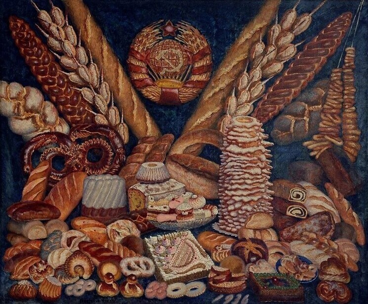 Смотря на невероятные «Советские хлеба», чувствуешь себя обескураженным. Что это — агитплакат, икона, китч? Всё везде и сразу, не зря же ещё с детства он любил копировать лубочные картинки, вдохновлялся средневековьем и ренессансом. Как на это смотреть? Куда это поставить? Пожалуй, хорошо бы было разместить их в музее В.И. Ленина в Горках, идеально бы — напротив композиции с первым компьютером Apple в СССР.
