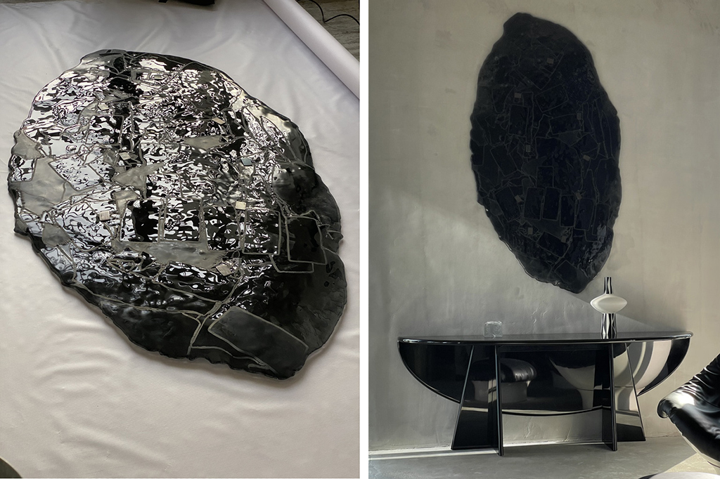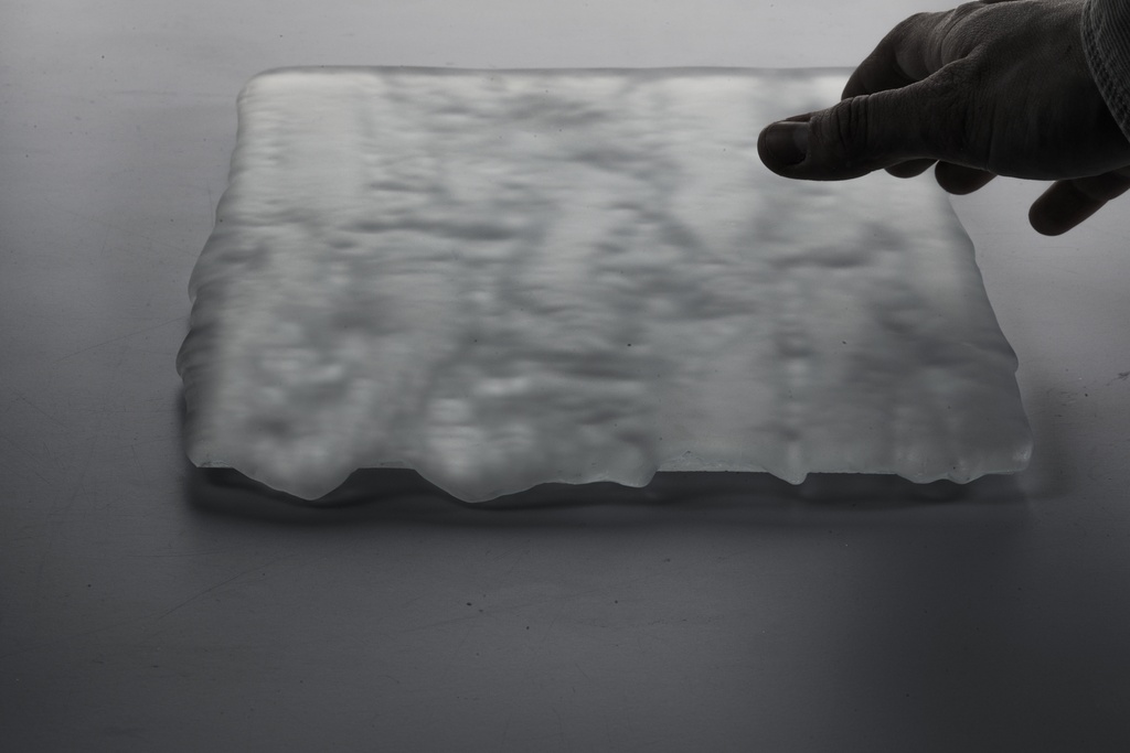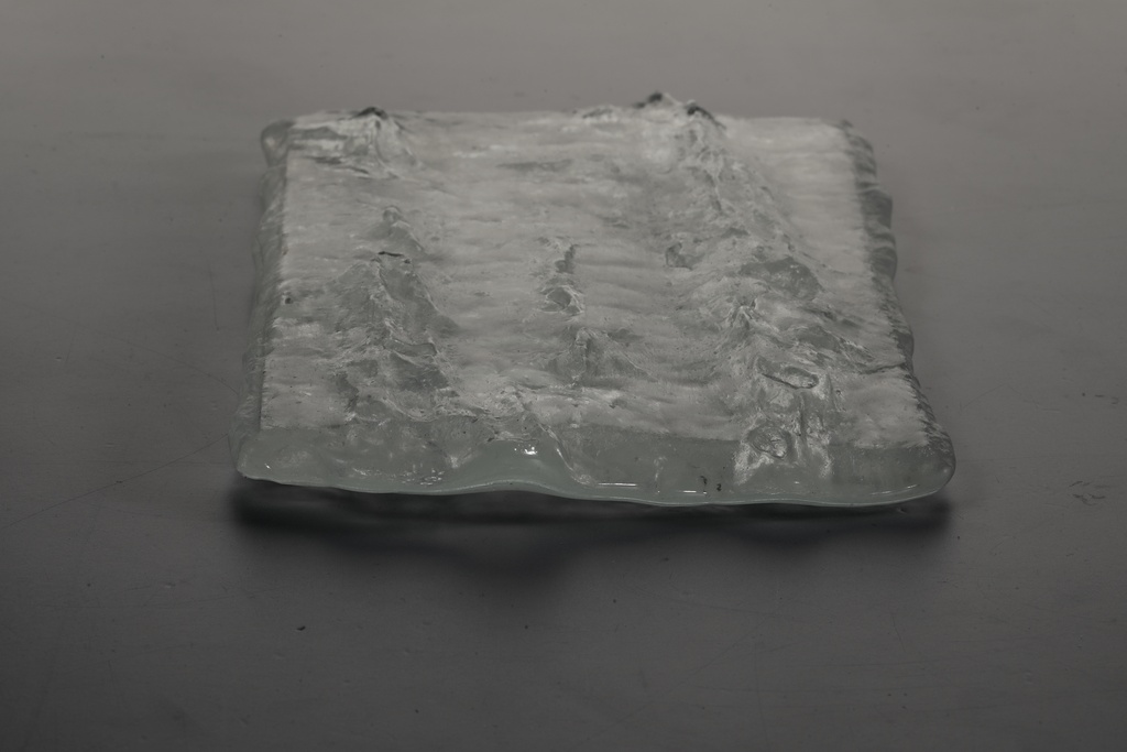 В ограниченной серии панно PEPEL стекло раскрывает свою сокровенную природу. Масштабные полотна, собранные в единую композицию, демонстрируют неотшлифованную обратную сторону — ту самую, что обычно скрывают от зрителя.