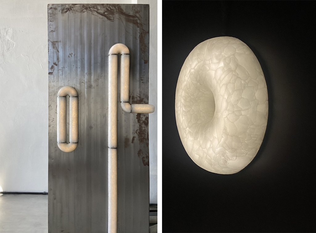 Коллекция OIOIIO, получившая международное признание и удостоенная престижной премии Autonoma Residency Prize на Венецианской неделе стекла, представляет собой новое слово в интерпретации стекла как художественного материала. Эта серия модульных светильников, выполненных из гранулированной стеклянной крошки, отличается уникальной белой матовой текстурой с бархатистой поверхностью.