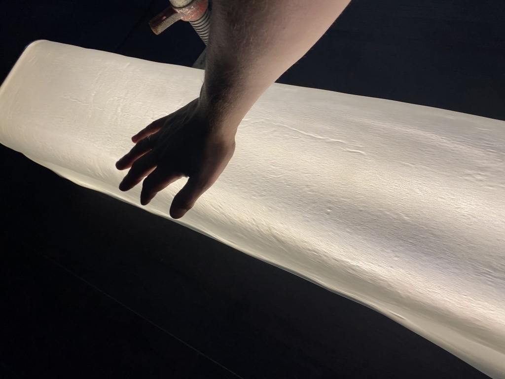 Центральным элементом зонирования на стенде FRESH.GALLERY станет световая перегородка FILAMENT. Её нежное свечение, напоминающее нити расплавленного стекла, притягивает взгляд и задаст тон всему пространству. Закруглённый радиусный элемент создаёт эффект «затягивания» пространства внутрь и визуально вытягивает его вверх. Матовая поверхность с шёлковистой текстурой мягко рассеивает свет, смягчая резкость, тогда как с обратной стороны фактура проявляется в чётком контрастном рисунке.