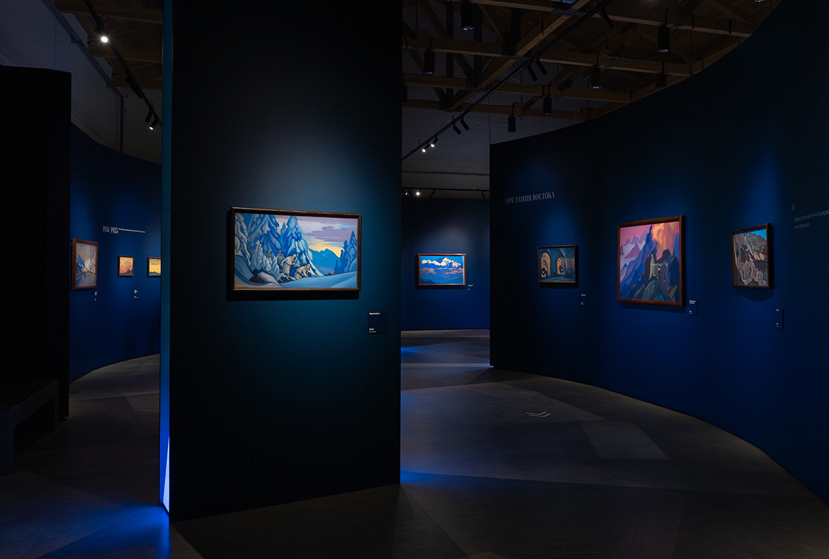 Экспозиция охватывает ключевые этапы творчества Рериха: от ранних работ, вдохновленных древнерусской историей, до гималайских пейзажей и эскизов к театральным постановкам. Отдельное внимание уделено созданию «Пакта Рериха».