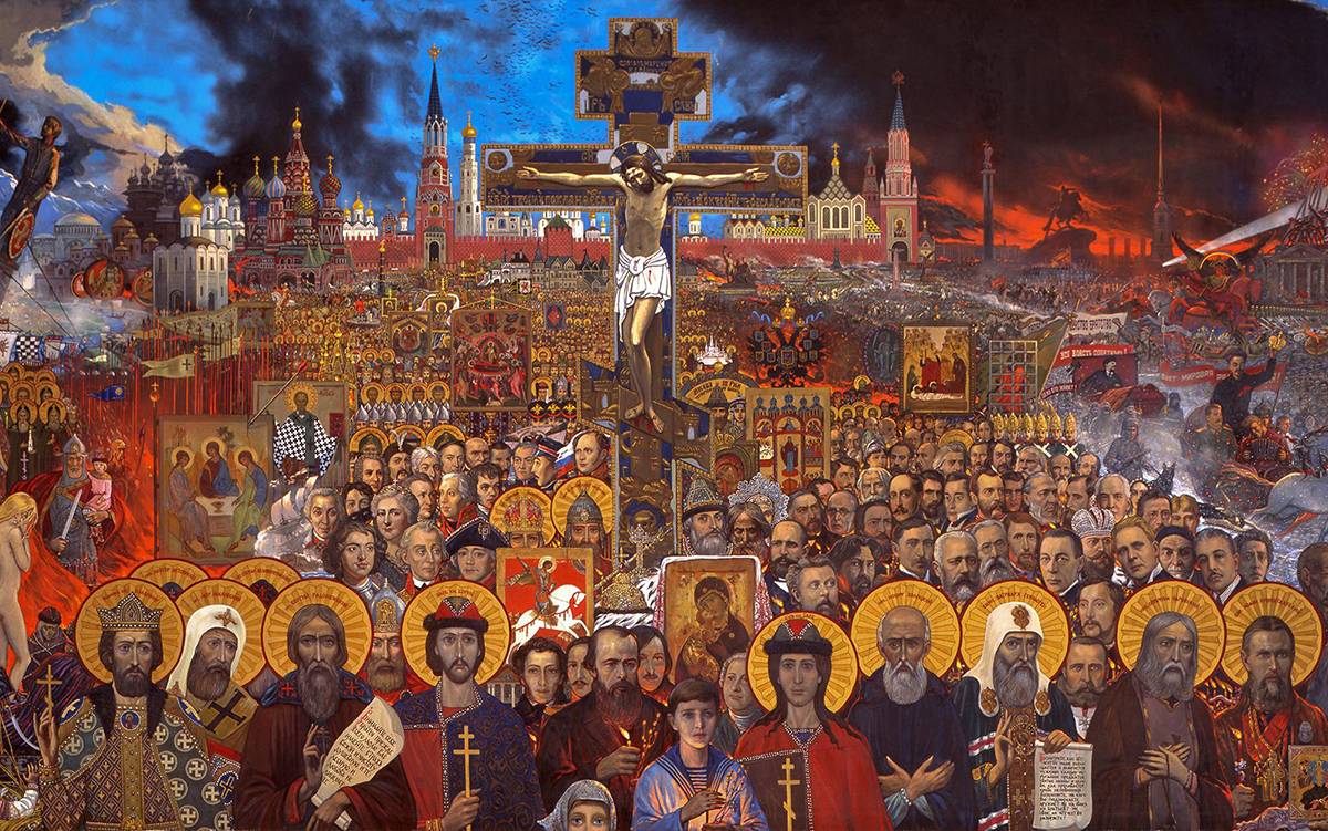 Если «Рынок нашей демократии» — это сфокусированный взгляд на конкретную историческую драму, то другая картина, «Вечная Россия» (1988), напротив, пытается охватить всю тысячелетнюю историю страны. Созданная к тысячелетию Крещения Руси и изначально названная художником «Сто веков», она представляет собой масштабную попытку осмыслить российскую историю как единое целое.