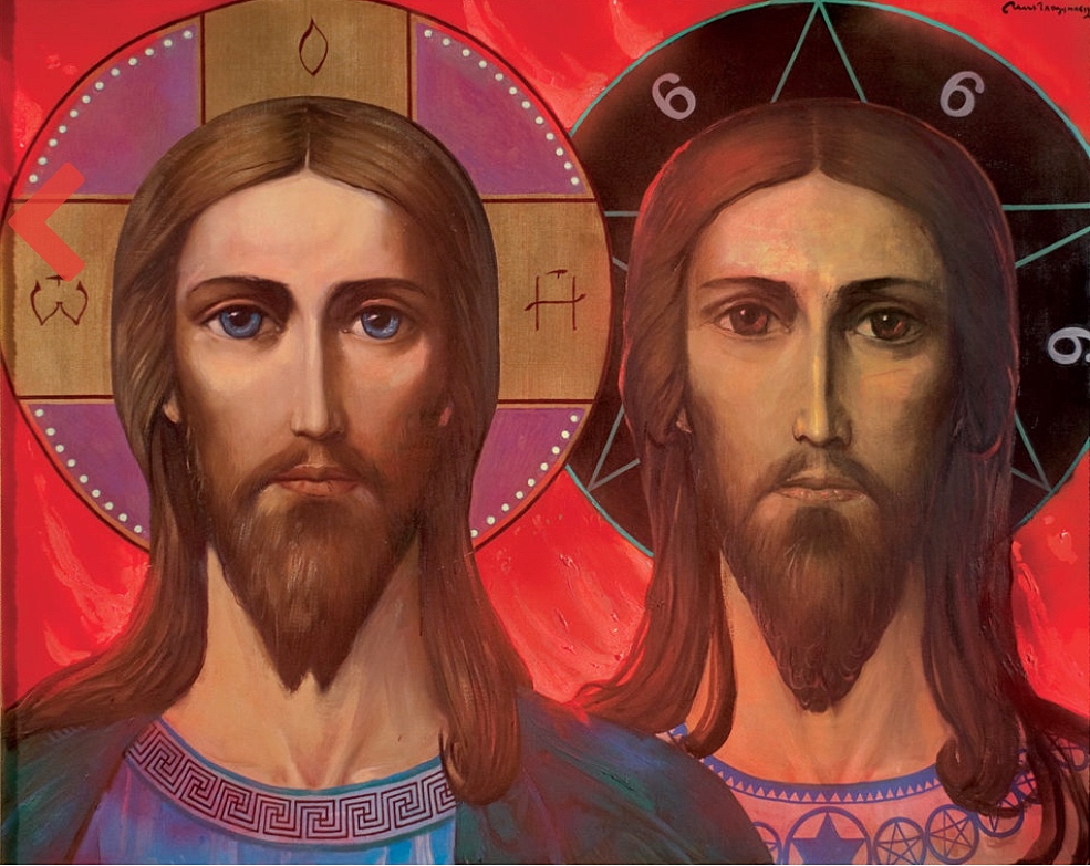 Композиция работы строится на контрастном сопоставлении двух полярных образов-символов. С одной стороны, зрителю является образ Иисуса Христа, чей лик излучает не внешний блеск, а внутренний свет кротости и всеобъемлющей любви. С другой стороны, художник являет лик Антихриста — духа тления и тотального разрушения. Глазунов намеренно наделяет его чертами сходства со Спасителем, чтобы раскрыть ключевую идею: зло часто является миру не как очевидное чудовище, а как искусная подделка под добро.