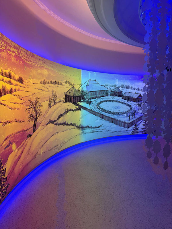 Здесь в дело вступают чувства: диффузоры доносят запахи ушедшей эпохи, а огромное полотно меняет цвет в зависимости от выбранного года. Эта среда позволяет буквально прожить те состояния, в которых рождались строки Пушкина.