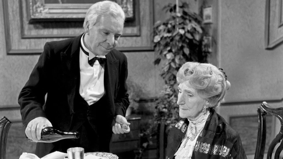 Пожилая аристократка мисс Софи устраивает приём по случаю своего юбилея. Она приглашает на праздник друзей, но вот незадача — каждого из них она пережила. Дворецкий Джеймс не хочет расстраивать пожилую даму, поэтому сам становится гостем, изображая каждого из друзей мисс Софи, повторяя голос, мимику и жесты.