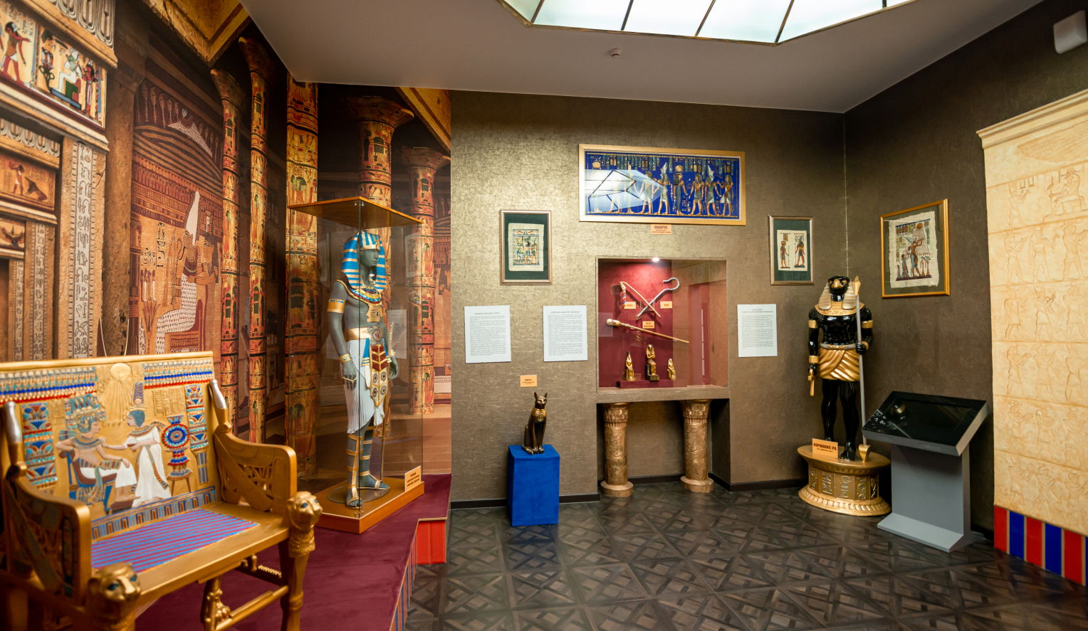 Все папирусы, размещенные на стенах, тоже настоящие, привезенные из Египта.