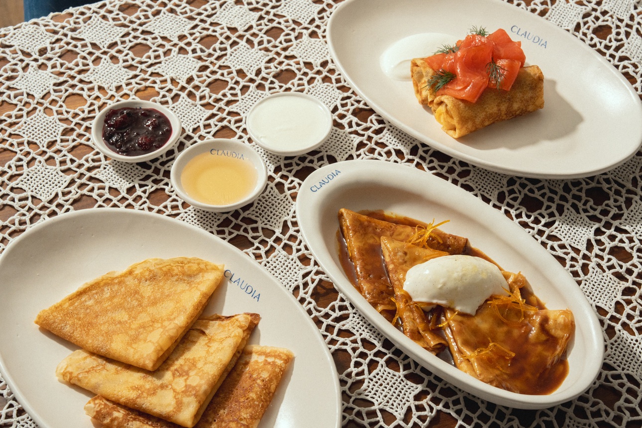 В ресторане средиземноморской кухни Глена Баллиса и Феликса Бермана Claudia сделали специальном меню — блины со слабосоленой форелью, яйцом и сметаной (950 руб.). Блины с уткой конфи (950 руб.) и соусом на основе коньяка и сморчков звучат более основательно, добавляя глубину и насыщенность вкуса. Завершают спешл блины «Креп Сюзетт» (800 руб.) с коньяком, апельсиновым фрешем и цедрой апельсина, дополненные ванильным мороженым: классическое сочетание с мягкой сладостью и выразительной цитрусовой нотой.
