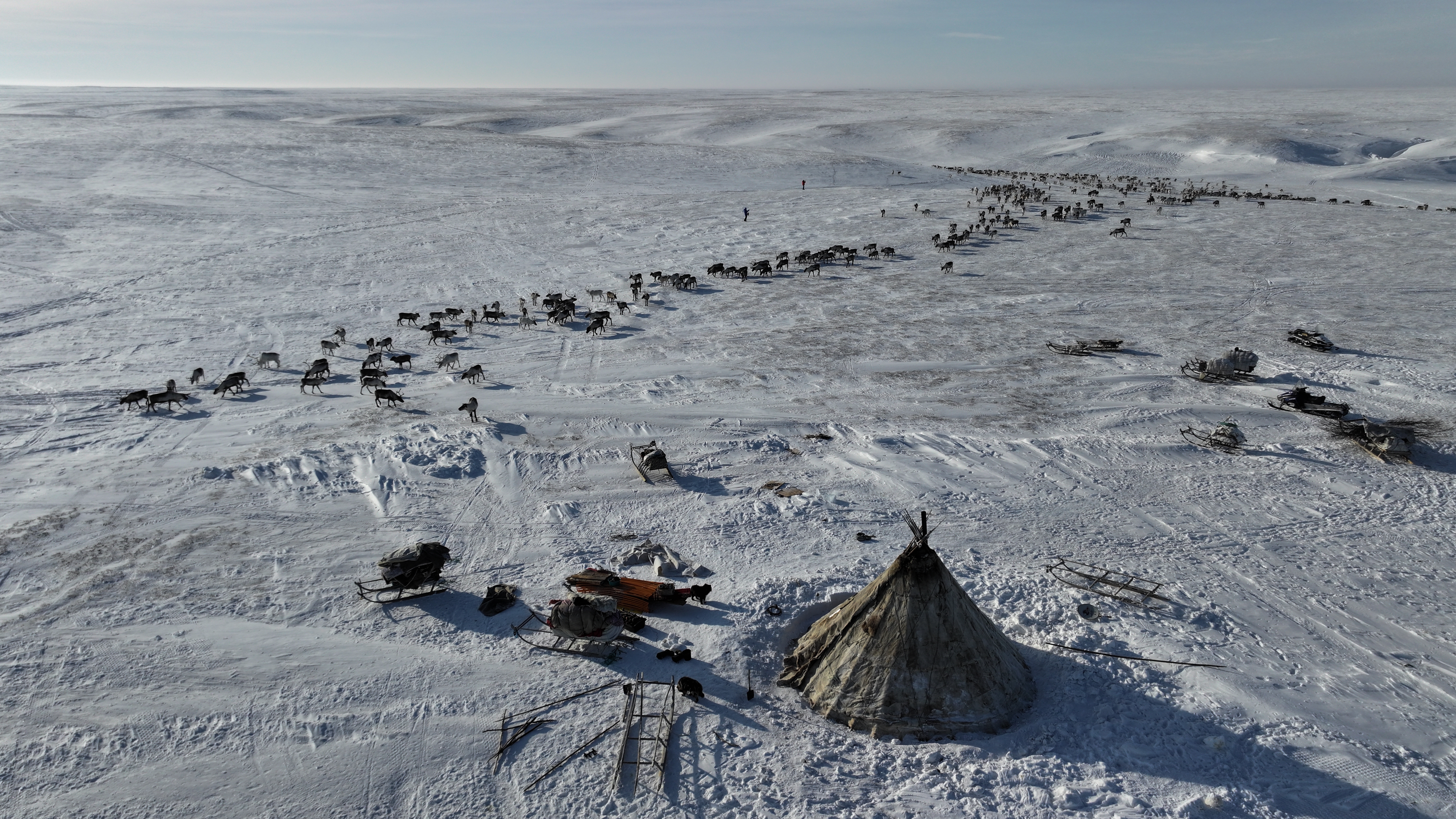 На Таймыре кочуют долганы. Их дома стоят на полозьях и готовы к переезду в любой момент — движение остаётся естественным состоянием.